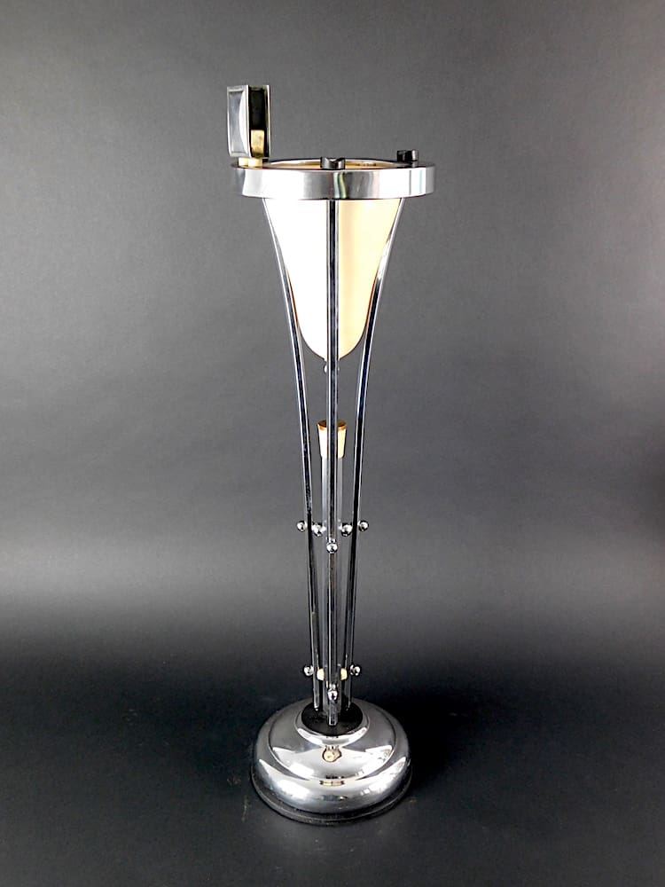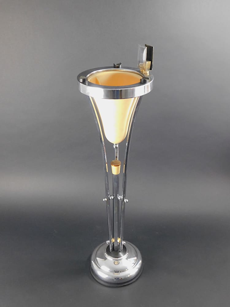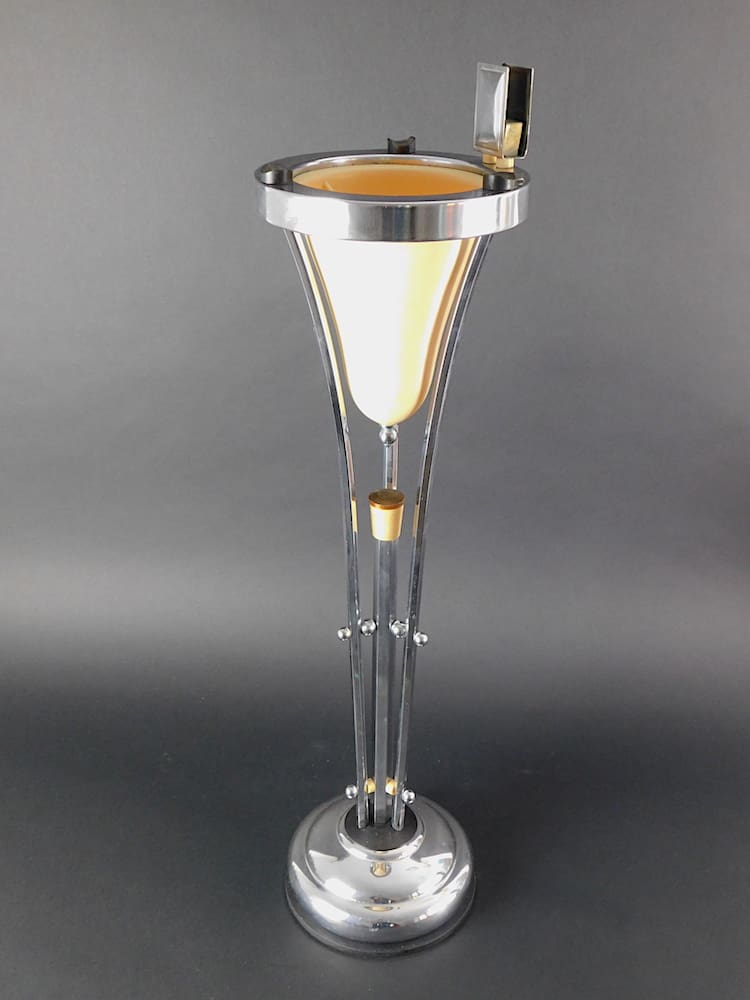 Modernist art deco cream trumpet floor standing smokers stand/ashtray. It was made by the Belgian company of Demeyere in the early 1930s. The trumpet ashtray dishes are usually black – this one is cream.