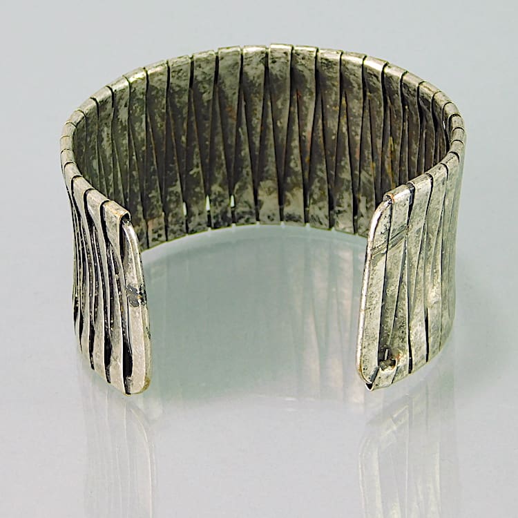 It measures 1.5 inches (4cm) wide to the band and is open to the back so will fit most wrist sizes medium to large.
