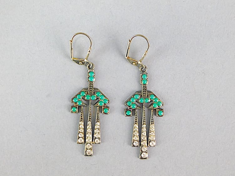 French art Ddco diamonte and turquoise stone earrings.