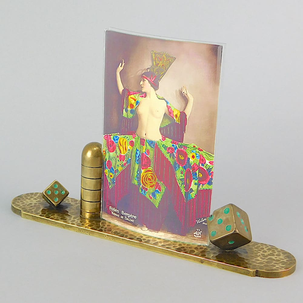 Unsigned but very much the style of Edgar Brandt. With unusual curved glass panels.
