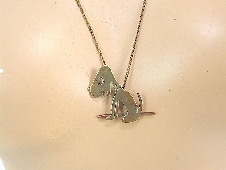 Dismal Desmond was a 1920s cartoon series in the news papers. This pendant is modelled on him Made of gilt metal an a gilt chain.