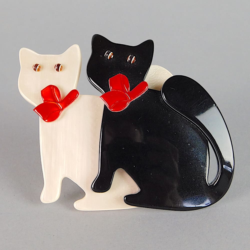First edition double watching cat brooch by Lea Stein, first made in 1968.