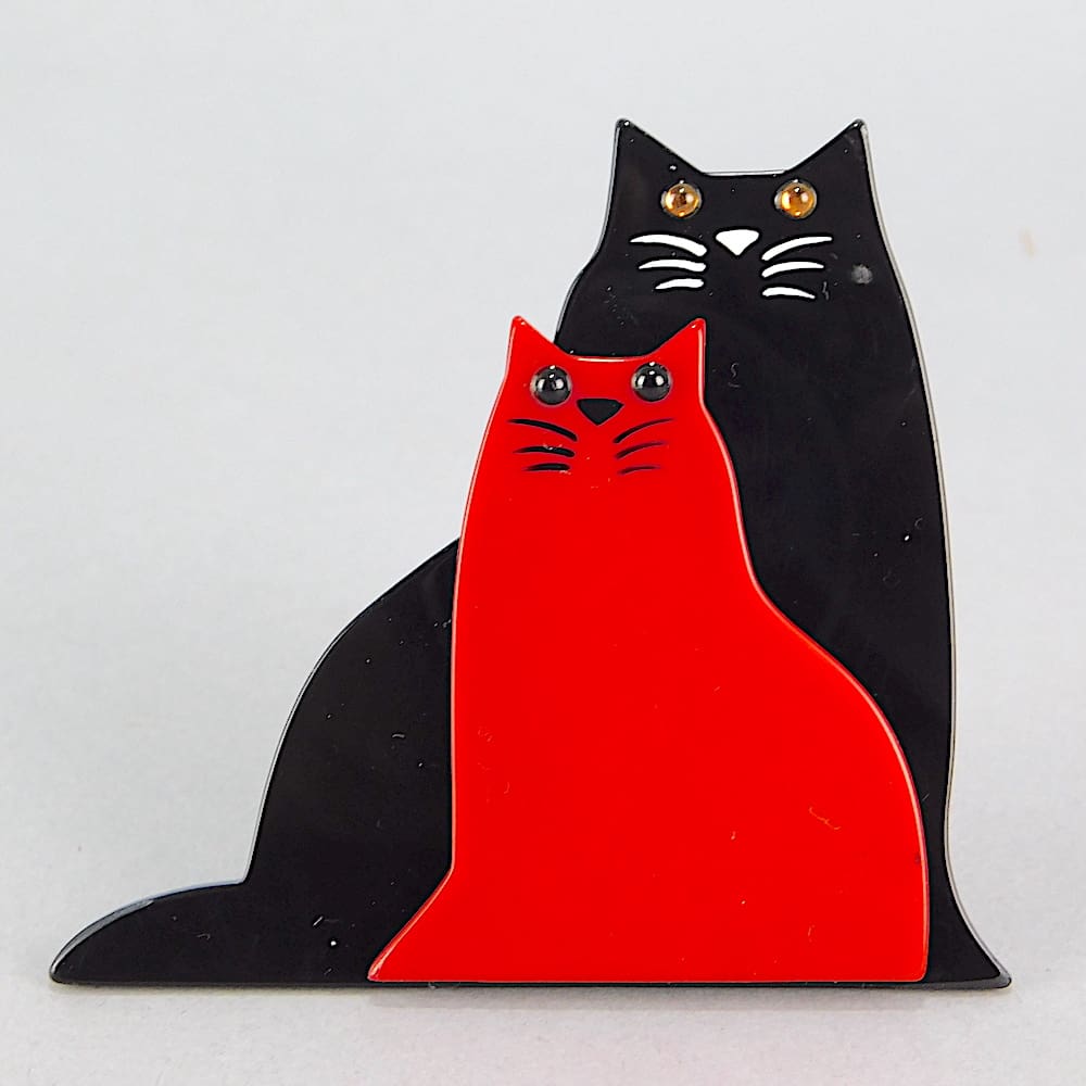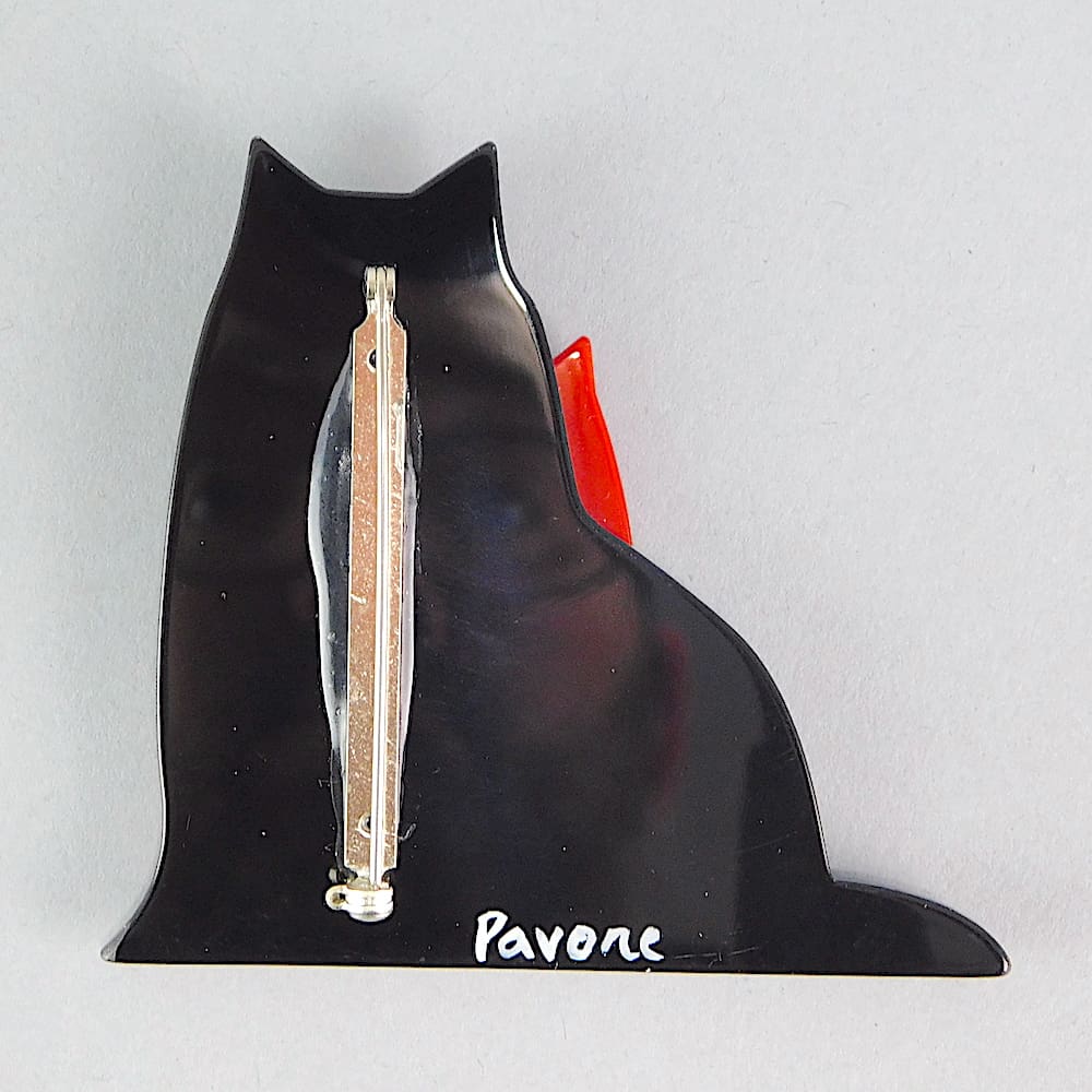 Vintage French galalith cats brooch, signed to the back – Pavone and fitted with a roll safety clasp.