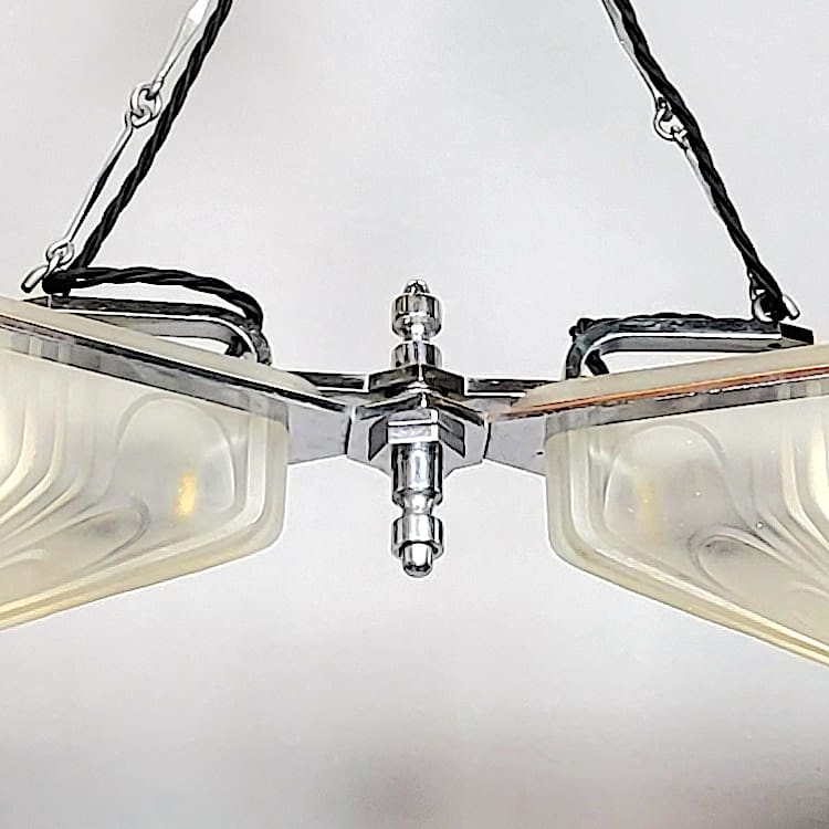 Frosted glass and chrome ceiling lamp, ideal shape for a hallway or lobby.