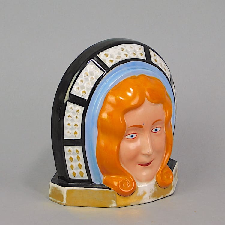 French ceramic night light with double faced lady (same face too each side). There is a signature but we are unable to confirm the name. It is currently unwired and has no bulb holder.