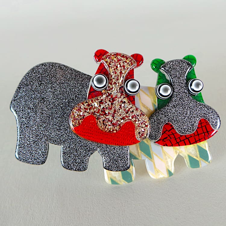 A very rare double hippo brooch by Lea Stein.