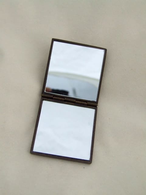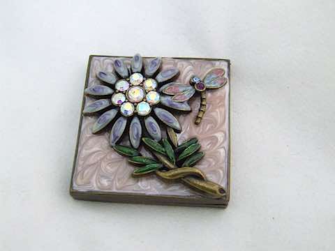 Stylish contemporary heavy enamel and diamonte butterfly and flower double mirror compact with flower made of enamel and glass stones to the lid. Made by Past Times.