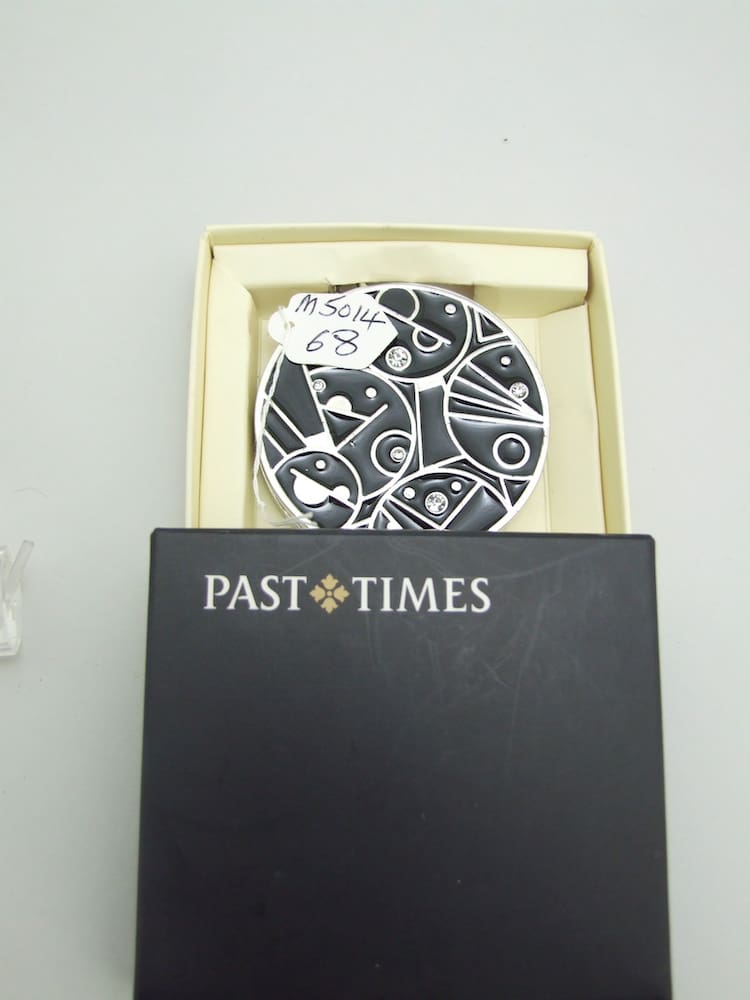 A double mirror compact by Past Times in black enamel and diamonte – in its original box.