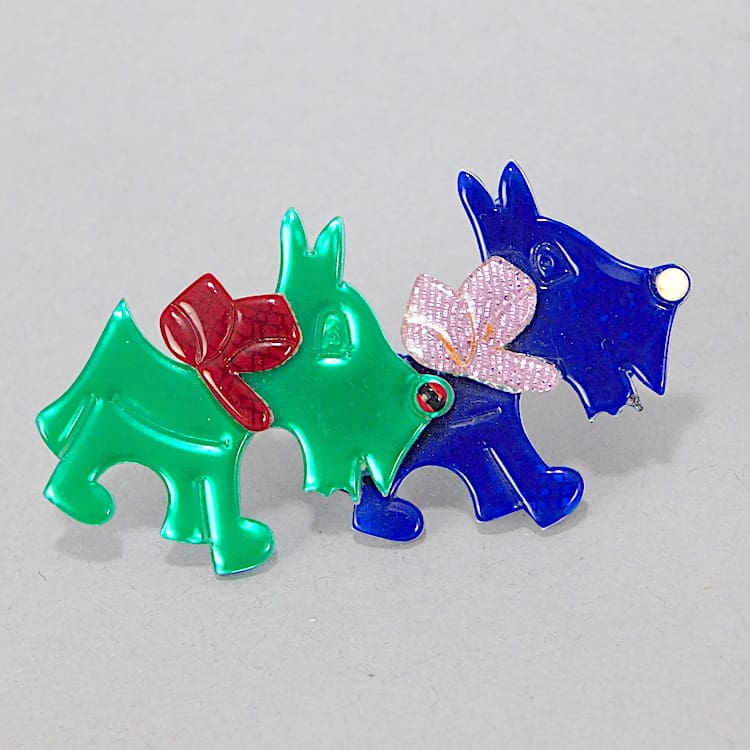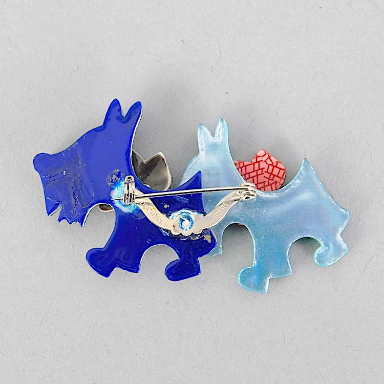 This is a very rare first edition double Totie the Scottie dog Brooch. They are now extremely hard to get but I have managed to get this and a single one. Signed on the V clasp.