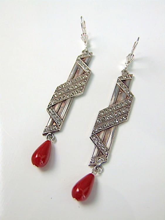 French silver plated and onyx earrings with diamonte detailing. Made for pierced ears.