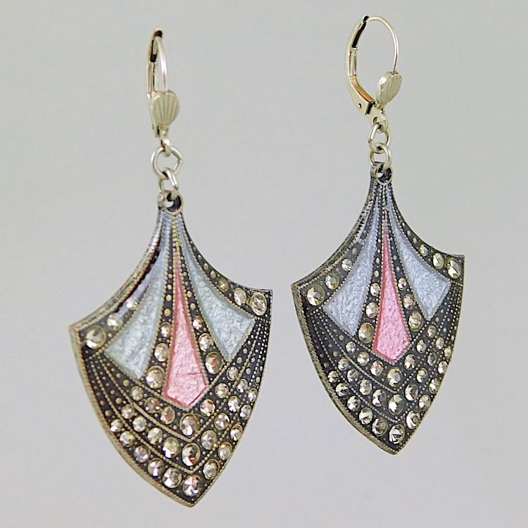 Large enamel and rhinestone earrings by Pierre Bex.