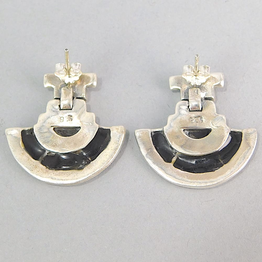 Silver and onyx Egyptian fan style earrings.