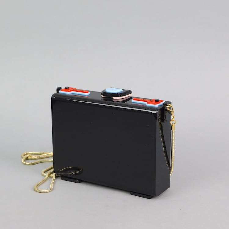 Amazing French hand made Egyptian themed phenolic handbag with snake chain shoulder strap.