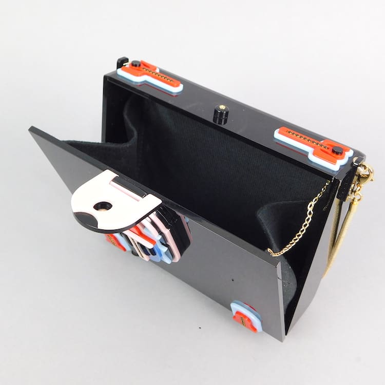 Lined in black velour with central pocket.
