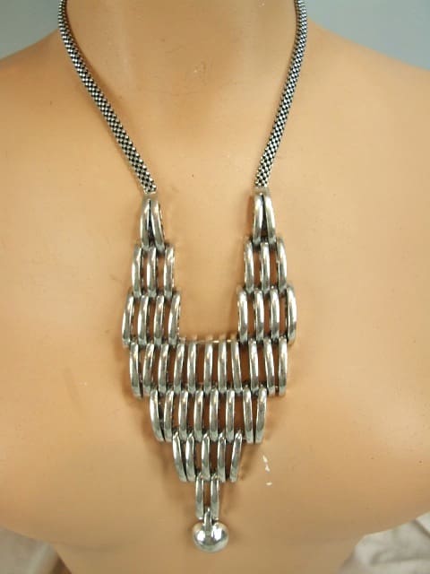 The central panel section measures a large 6 inches high (15cm) The length of the chain is so it will hang approximately 22 inches total length from clasp to clasp (56cm) but can be hung shorter if required.