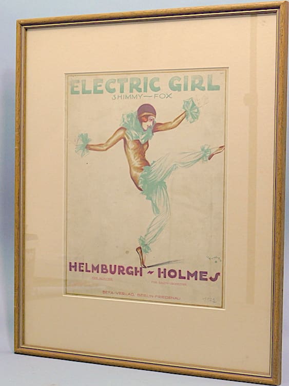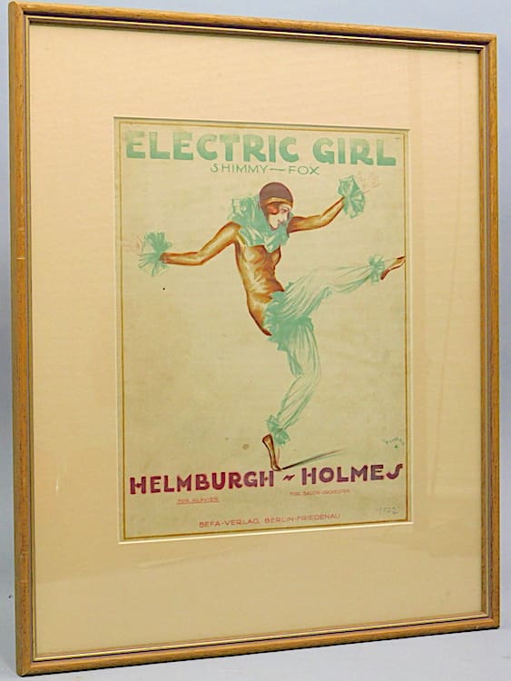 A lovely lithograph poster picture, dated 1922 and mounted in a wood frame.