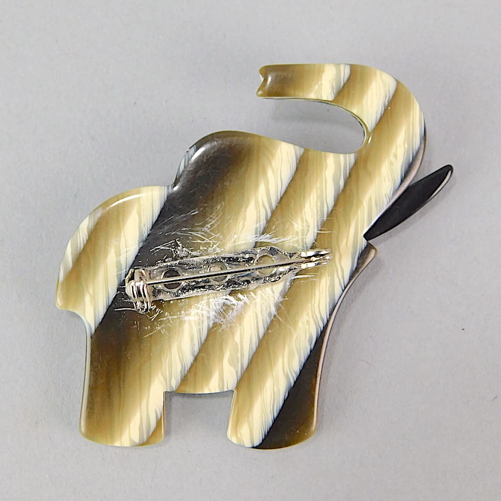 This vintage elephant brooch is an unsigned piece by Lea Stein. Made in 1968 and fitted with a roll safety clasp.
