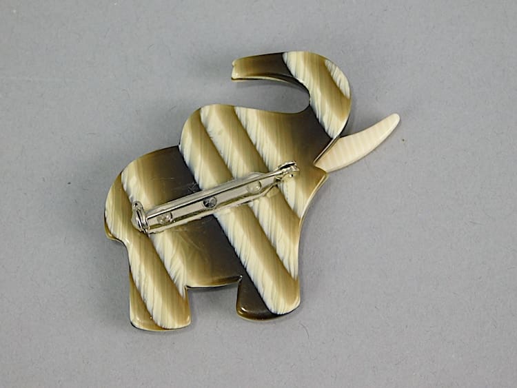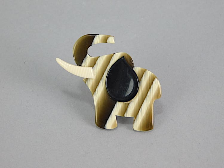 This vintage elephant brooch is an unsigned piece by Lea Stein. Made in 1968 and fitted with a roll safety clasp.