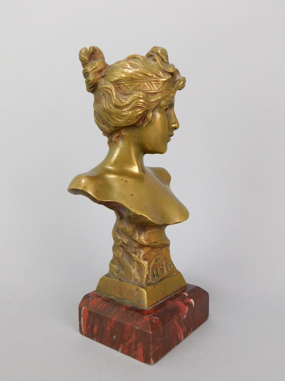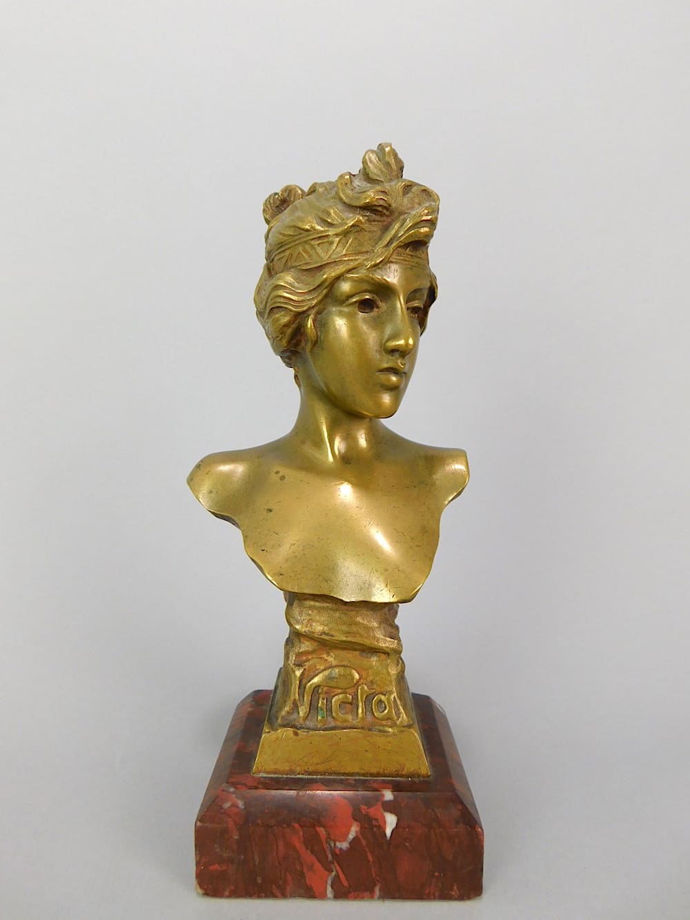 Entitled ‘Victa’, this is a top quality bronze bust by Villanis, and is signed in the bronze – and also bears the ‘Societe des bronzes Paris’ seal.