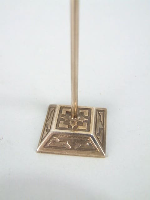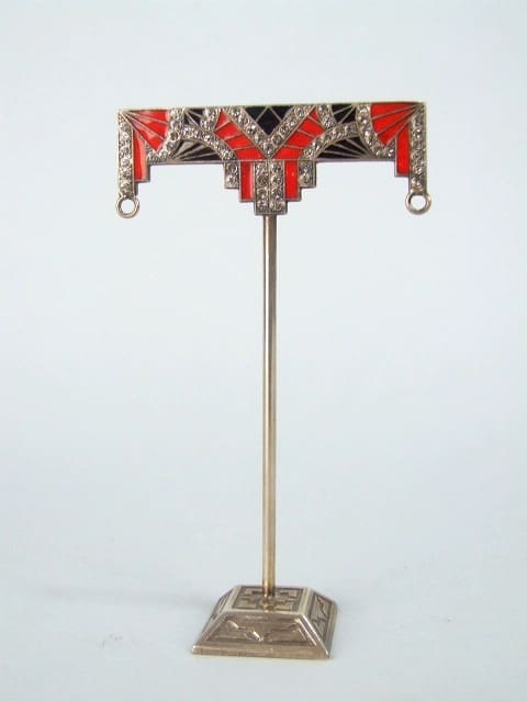 French earring stand in black and red enamel.