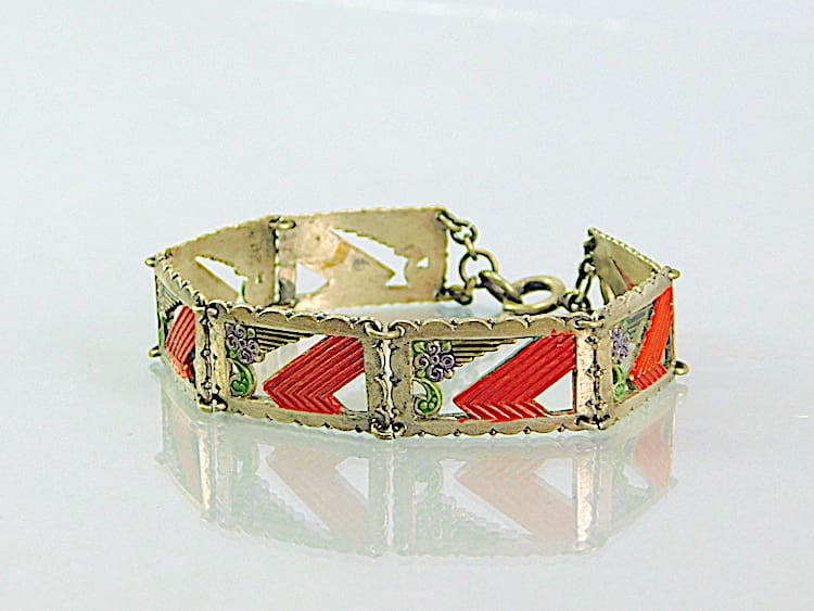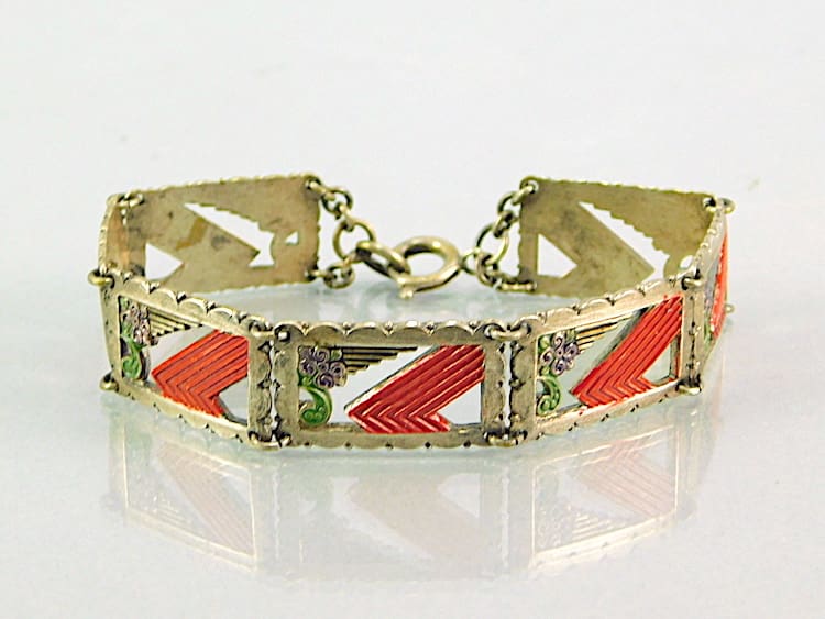 Floral enamel painted panel bracelet, made by Bengel in the early 1930’s.