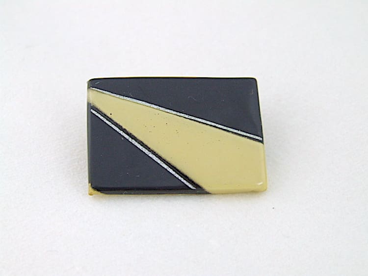 French art deco enamelled metal brooch, made in the 1920s and fitted with a roll safety clasp.