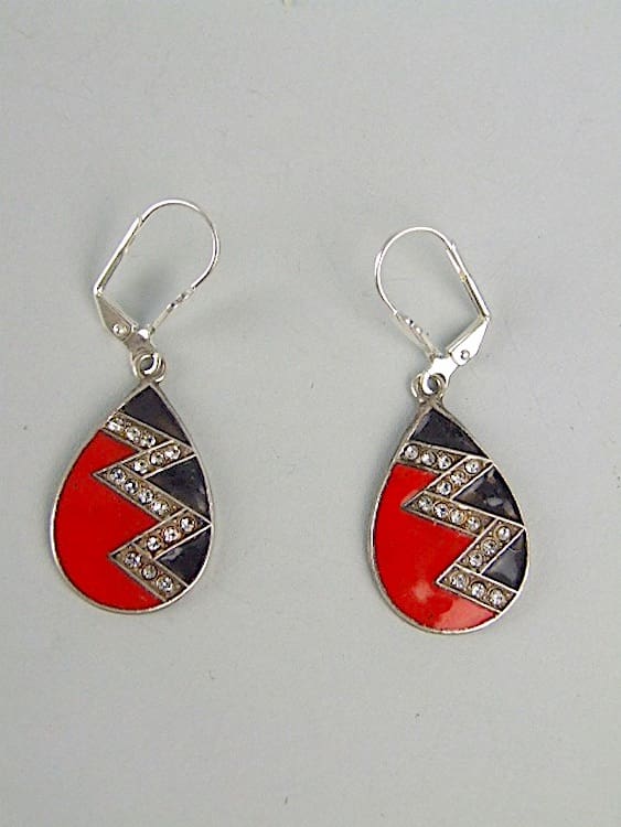 Black and red enamel earrings. Made for pierced ears and fitted with new silver hooks.