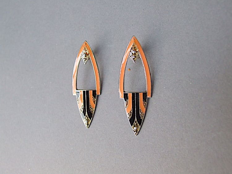 Vintage peach and black earrings for pierced ears. Probably date to the 1960’s.