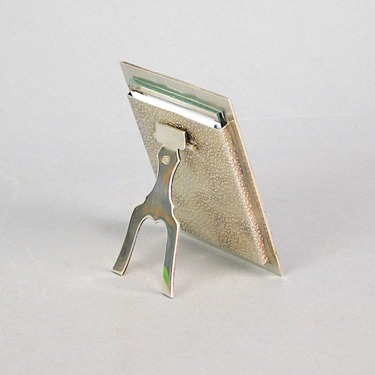 Art deco black and green enamel small photo frame. Silver plated with rhinestone detail.
