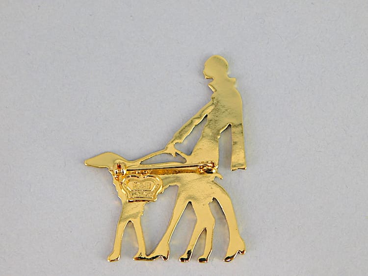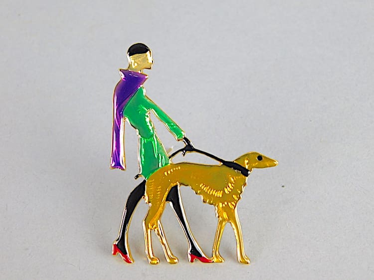 Contemporary enamelled Vogue Brooch fitted with a roll safety clasp.