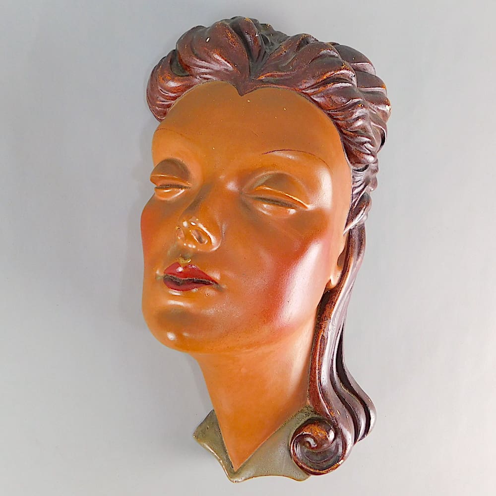 A large English plaster wall mask, artist unknown, but possibly by Douglas or Collins.