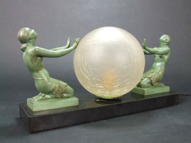 Art Deco double lady lamp made by the Le Verrier foundry and designed by Pierre Le Faguays using his pseudonym – Fayral.