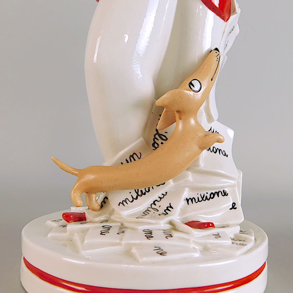 Fabulous modernist cartoon style ceramic man and dog statue by Italian artist Luigi Fabris.