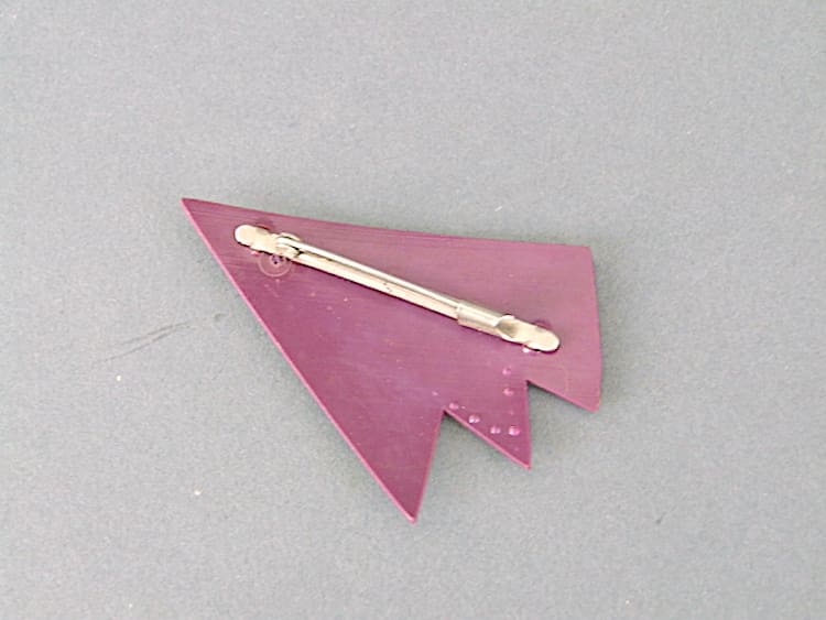 French phenolic fan brooch with diamonte detail. This is an unsold stock item. It was made by Auguste Bonaz in the 1920s.