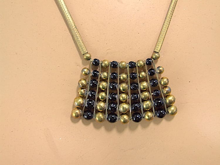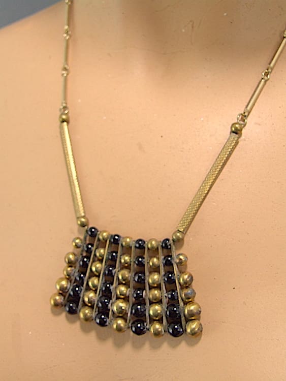 Unusual gilt metal and black glass bead fan panel. Made by Jakob Bengel in tyne early 1930s.