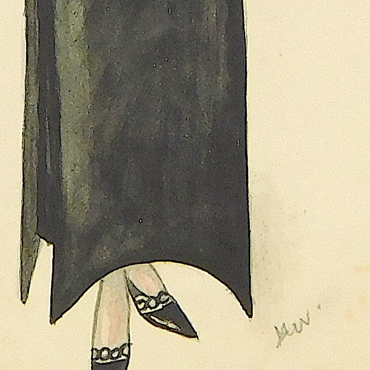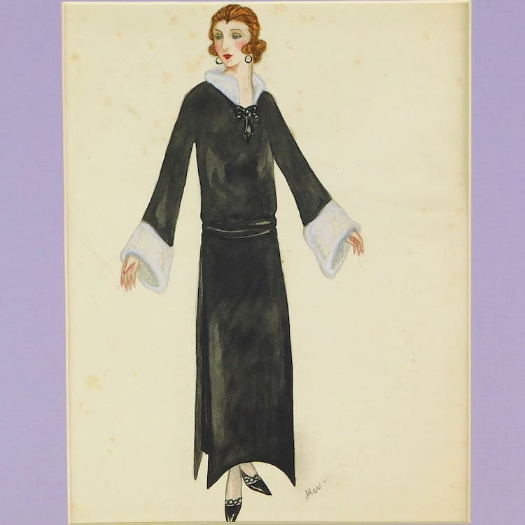 Original water colour 1920s fashion design. Indistinctly initialled DW and painted on paper. Would look great if framed.