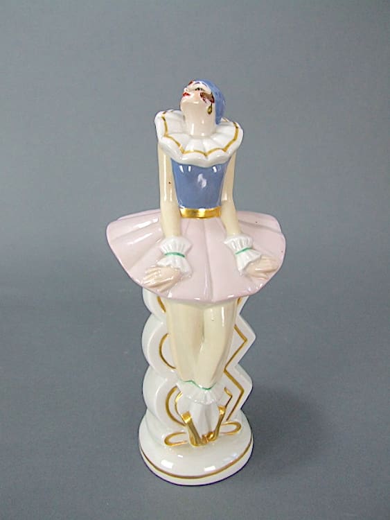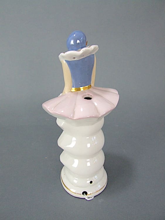 Beautiful German ceramic art deco flapper dancer, originally a night light with a hole to the back for the wire and 2 heat holes. It is unsigned but by Fasold and Stauch.