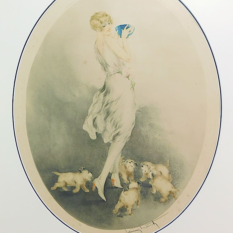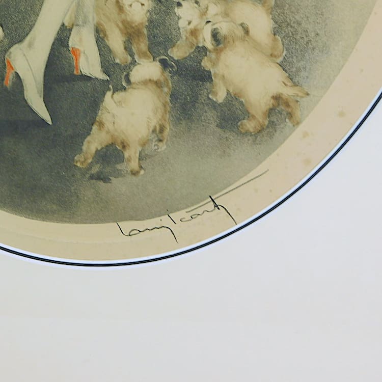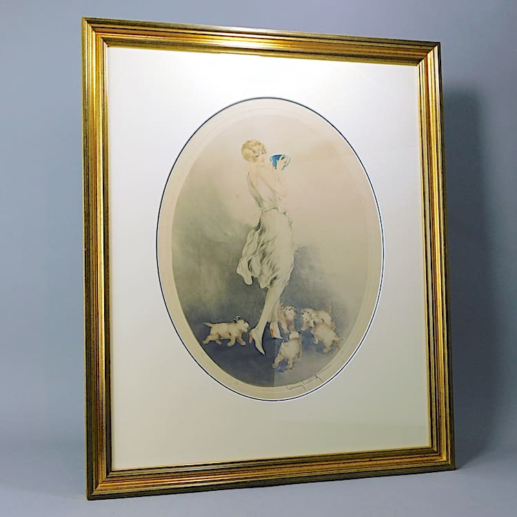Femme aux Chiots, copyright 1928. Pencil signed and bearing the foundry stamp and numbered 386. Currently unframed so easier to post.