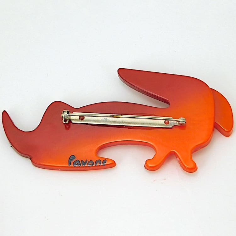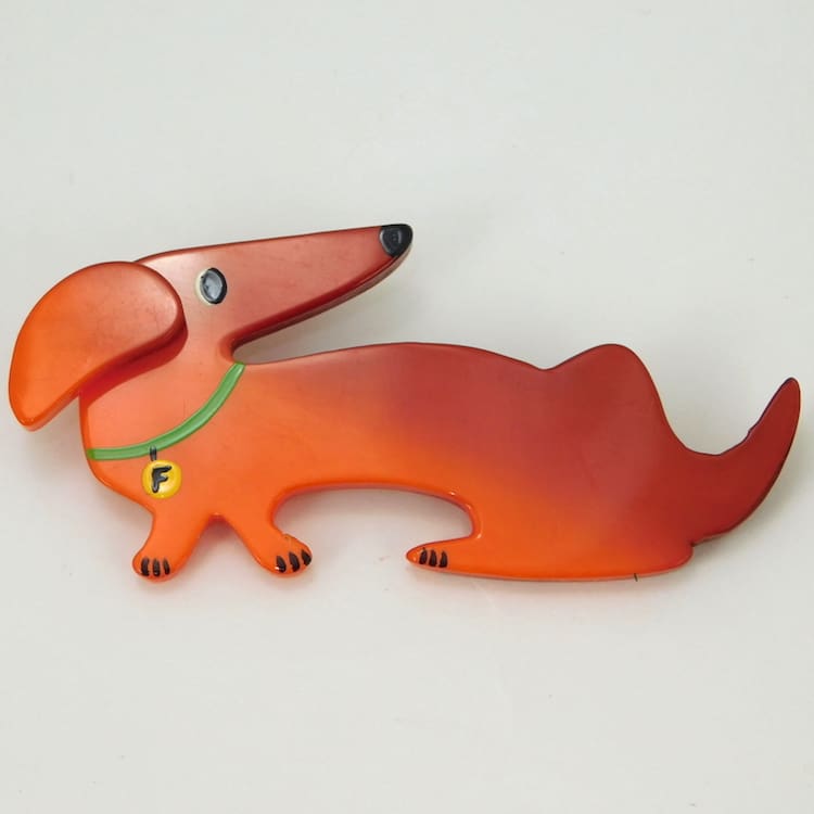 French vintage galalith fife dog brooch hand made and painted by Marie-Christine Pavone.