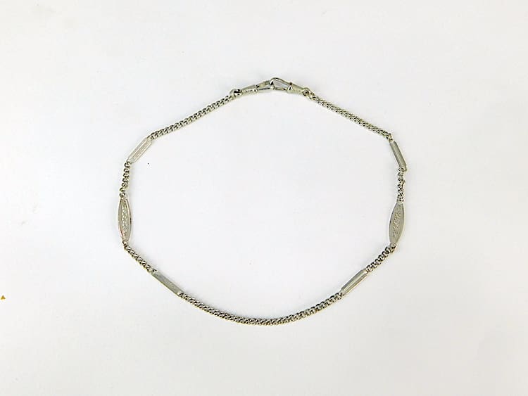 Chromed metal watch fob chain (chatelaine) by Jakob Bengel. Made in the 1920s, Bengel is famous for starting his business as a watch chain maker.