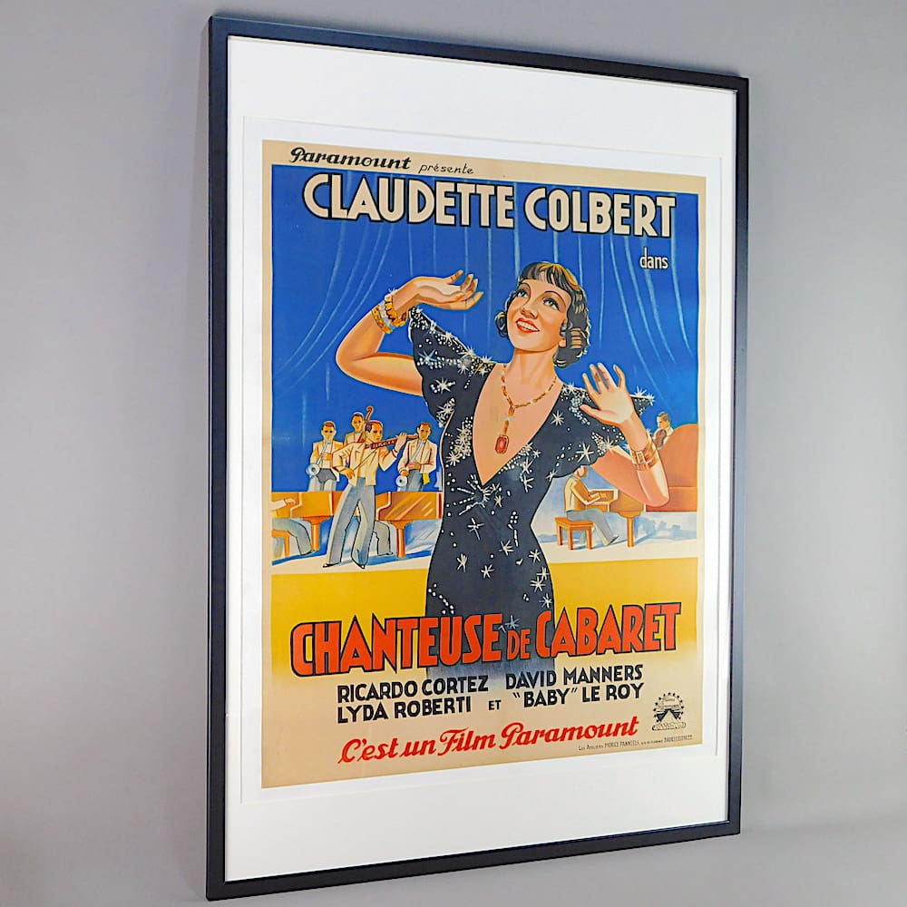 Original 1933 French art deco promotional poster for the film Chanteuse de Cabaret staring Claudette Colbert.