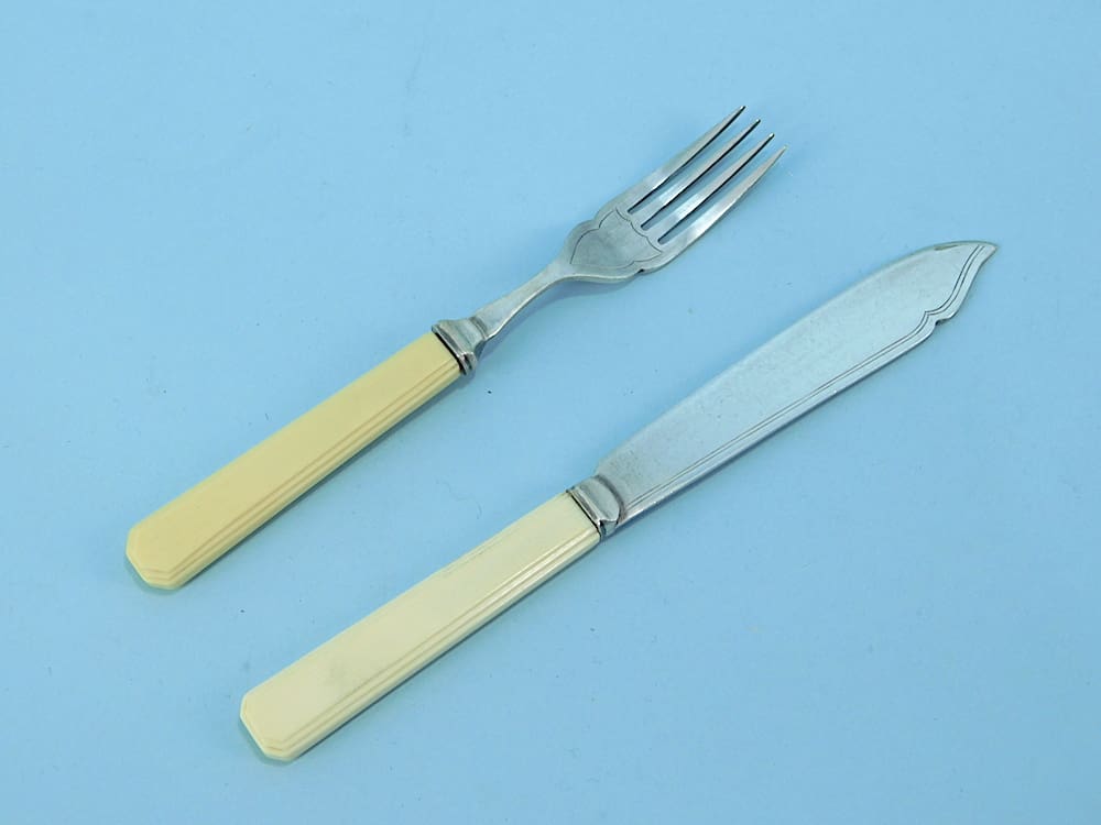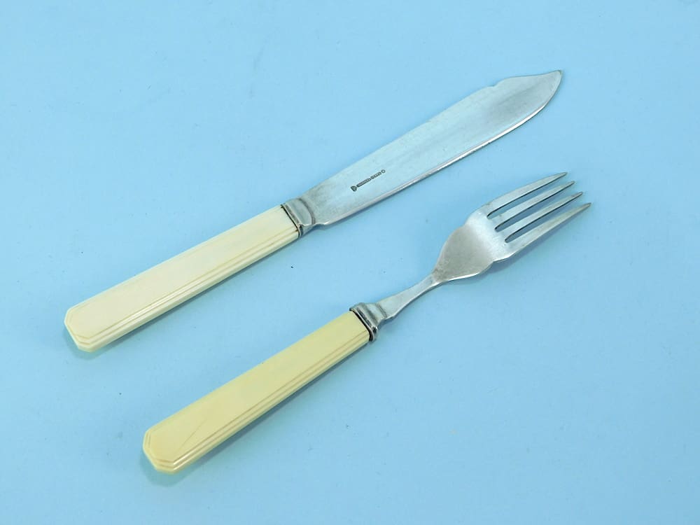 Stepped cream celluloid handles with original box. Set of six. Hallmarked.
