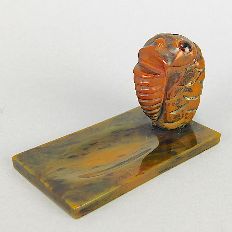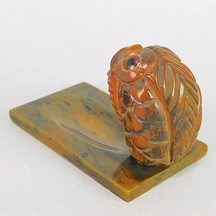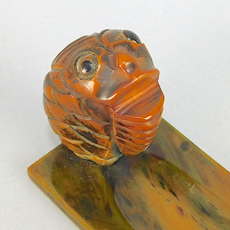 Phenolic desk tidy/pin tray with stylised Fish. The fish has glass eyes.