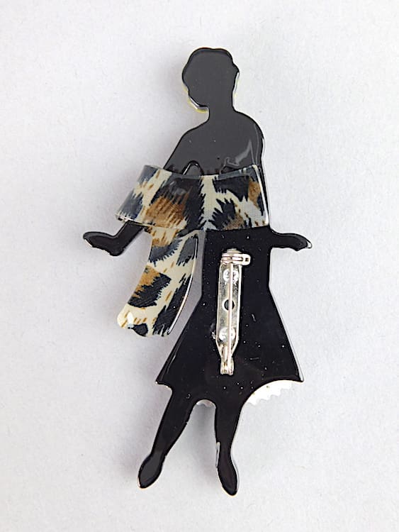 French Phenolic art deco flapper brooch, fitted with a roll safety clasp.
