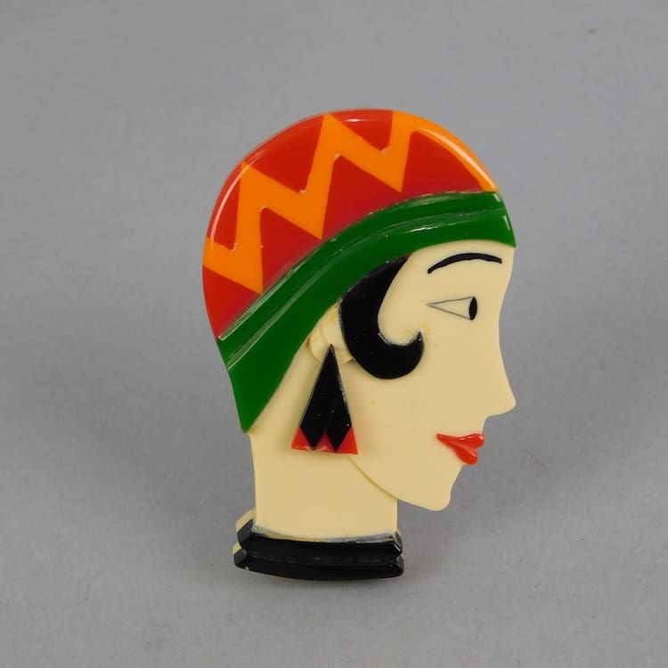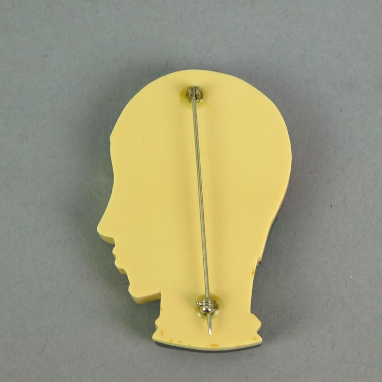 French hand made phenolic large flapper brooch. Fitted with a roll safety clasp.