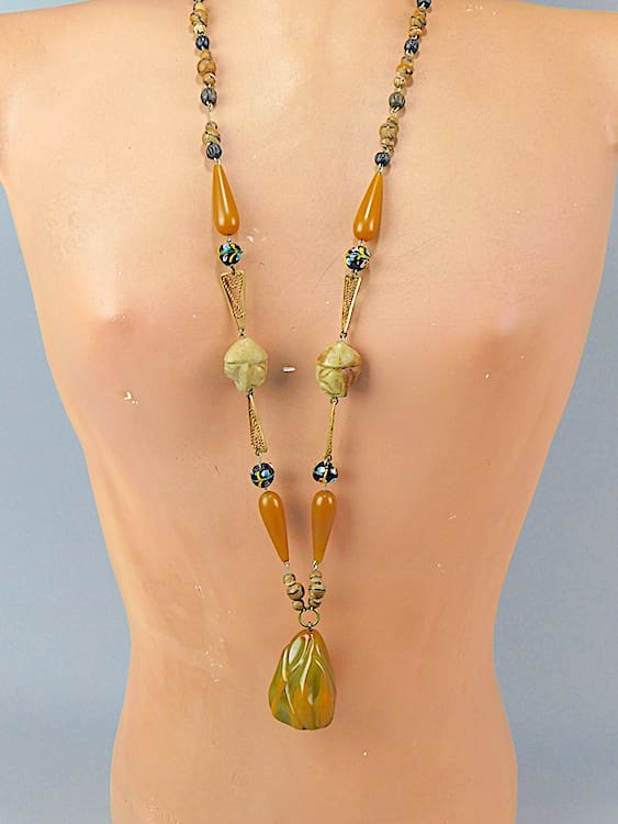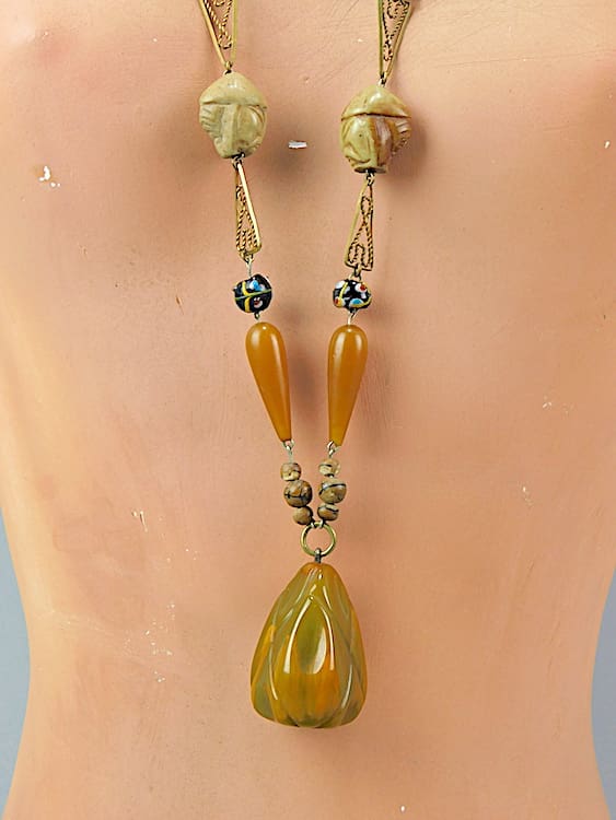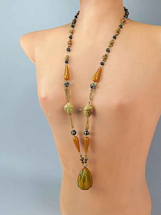Blue and beige galalith Chinese style beads by the famous Belgian company of Ebena. Made in the early 1920’s.
