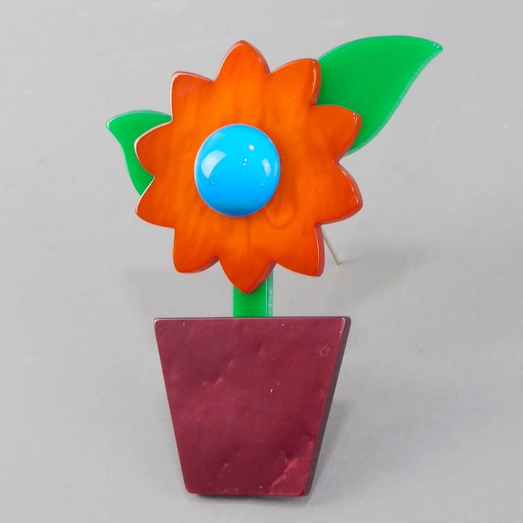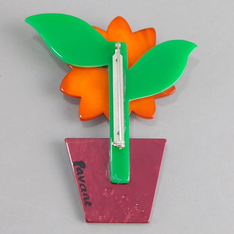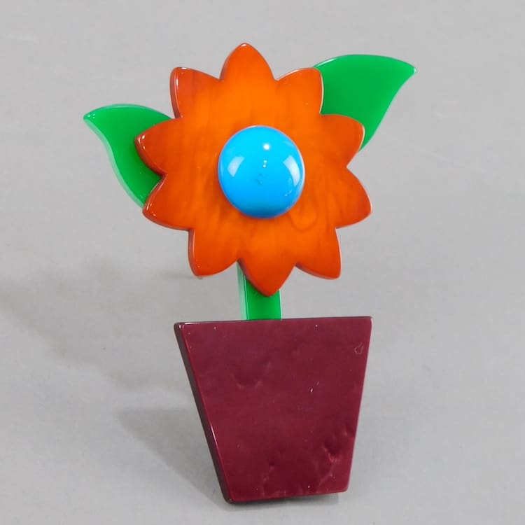 French hand made vintage galalith large flower pot brooch.