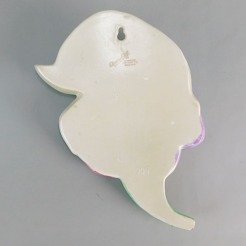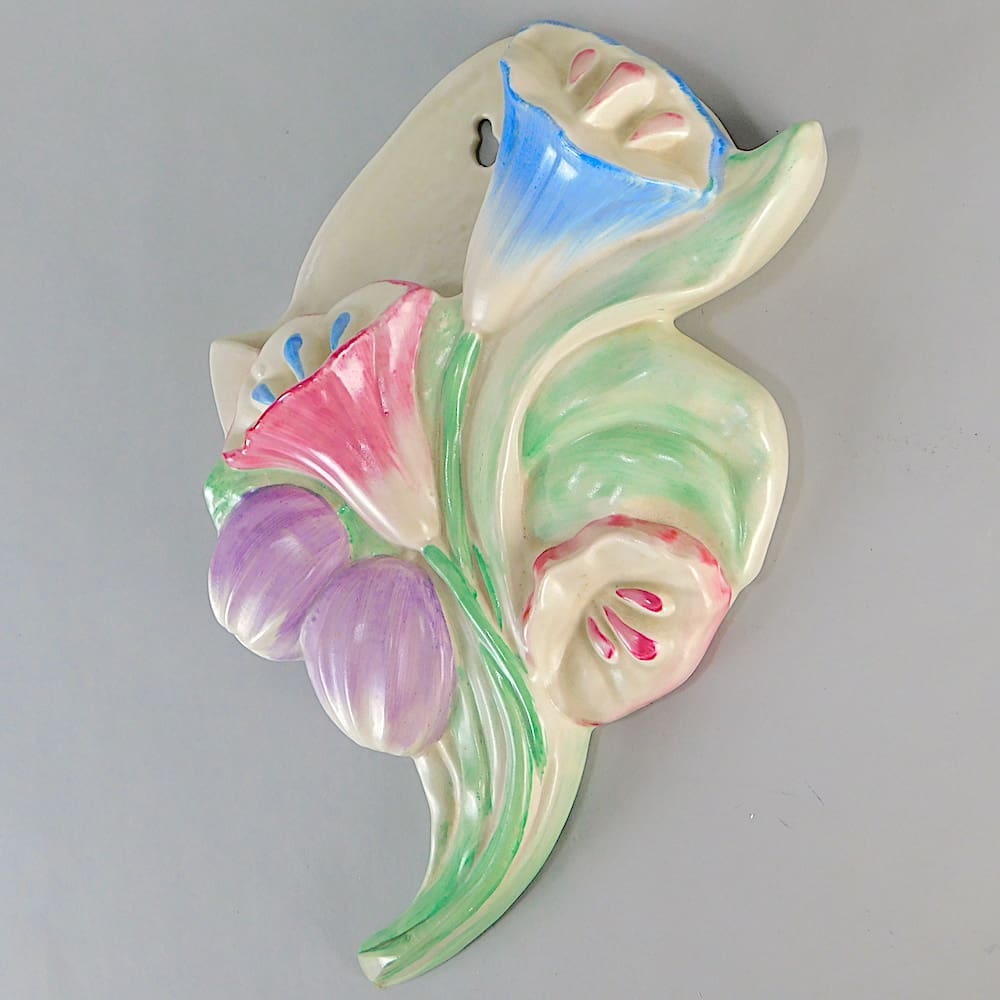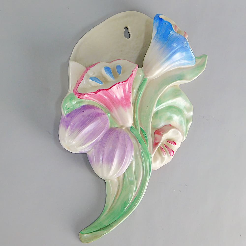 Art Deco hand painted ceramic wall pocket with a mushroom glaze.