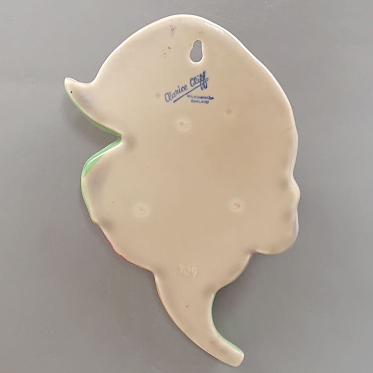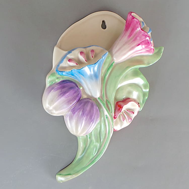 Art Deco hand painted ceramic wall pocket with a mushroom glaze.
