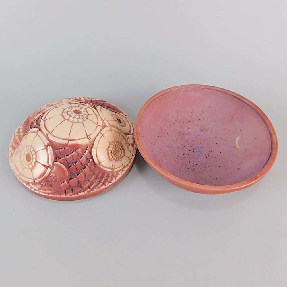 4.25 inches (10.5cm) diameter, 2.5 inches (6.5cm) high.